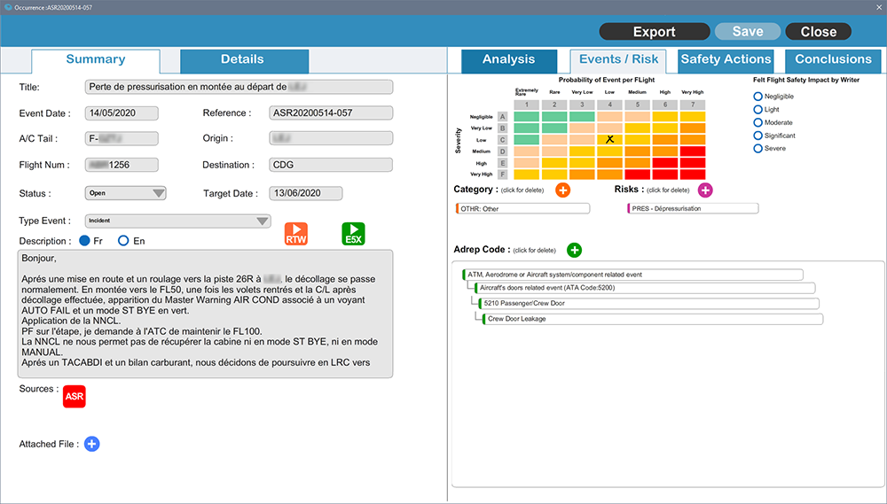 - Sending ASR reports with analysis to the authorities (E5X format supported)